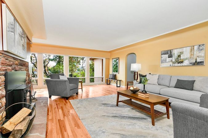 Step into this timeless mid-century home that offers 6 beds, 3 full & 2 half baths, and 4,338 sqft of warmth and space. Enjoy glowing hardwoods, two sandstone fireplaces, & large gathering areas on both levels—perfect for hosting or relaxing. The updated kitchen shines with quartz counters and new appliances. Multiple storage rooms add function, while a vintage balcony staircase leads to a private backyard retreat -this is more than a home. It’s your next chapter waiting to be written. See the virtual tour!