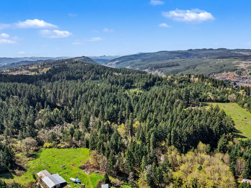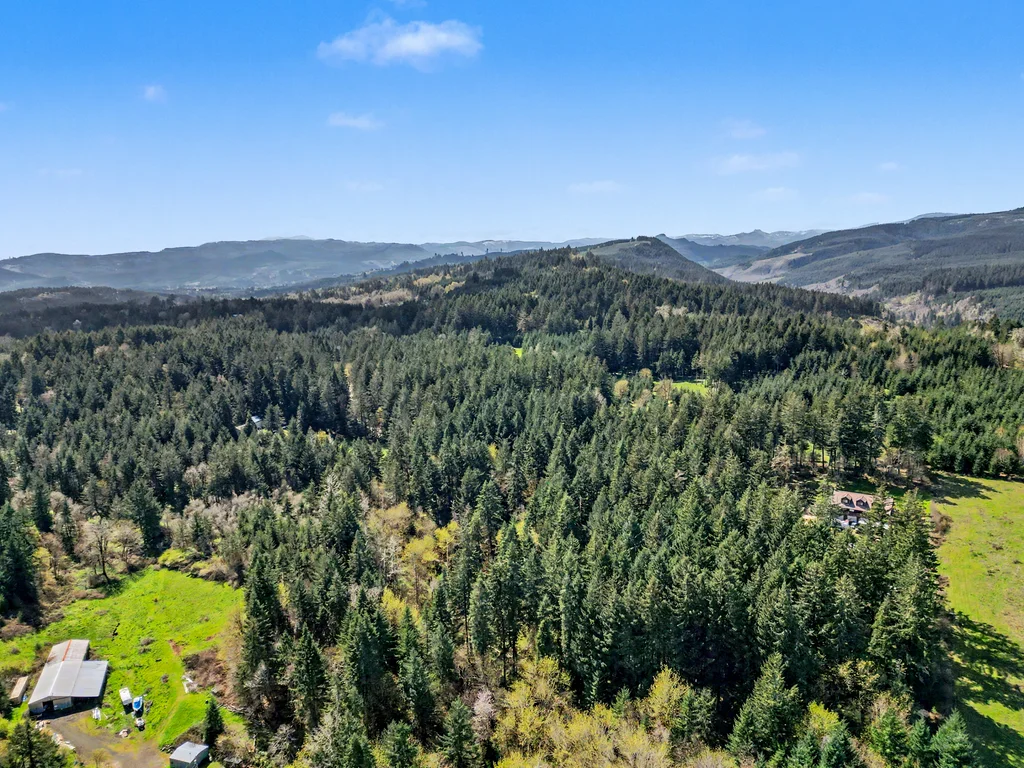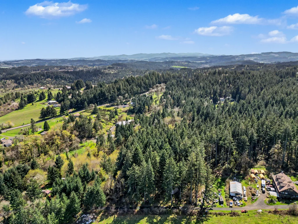 The property includes a metal shop with power and an existing older septic system. Zoning is AR‑5 (Single‑Family Residential), and the offering consists of two parcels: a 0.14‑acre parcel with the shop and a 5‑acre parcel currently in timber deferral, keeping property taxes low.