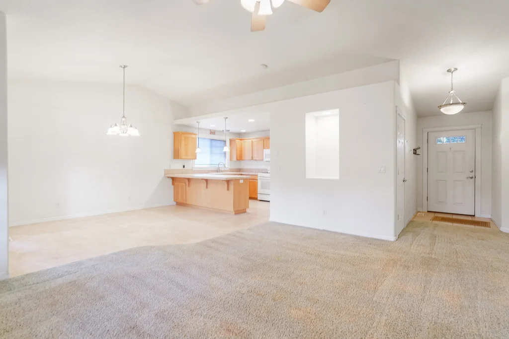 Single level custom-built home on private lot! $10,000 flooring credit toward closing costs! Well kept home ready for a buyer’s new vision. Large vaulted great room open to the dining and kitchen. Cozy gas fireplace. Kitchen with beautiful oak cabinets, peninsula island, pantry with deep shelves and gas stove. Dining with door to the sunroom and large covered deck, great for indoor/outdoor entertaining. Large primary suite, walk-in closet with built-in’s, ensuite bathroom. New gas hot water heater 2023, gas furnace in 2020. Laundry room with deep sink. Mature landscaping throughout. Concrete walk way around the whole house. Bring your gardening dreams to life in oversized, charming garden shed with space for tools, and so much more. Feels very private, but close to everything in town! Your new home for the holidays!