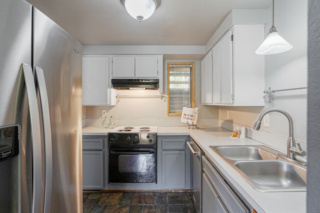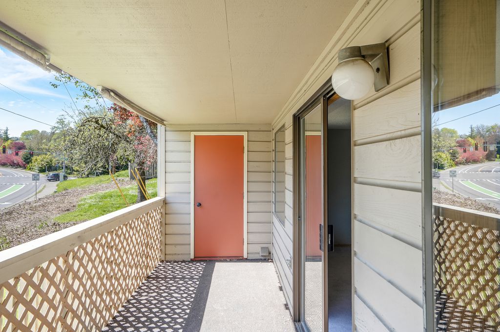 This 2-bedroom, 1-bath condo has a great flow and comfortable floorplan. Kitchen with stainless steel refrigerator and dishwasher opens to the dining area into a generous living room with sliding glass door to the large balcony with southwest views. Full bathroom with tub/shower combo and laundry offers dual access to Primary bedroom. Storage closet on balcony. HOA covers exterior maintenance, water, & garbage. New roof in 2024. Carport with 1 space. Conveniently located near transportation and amenities.
