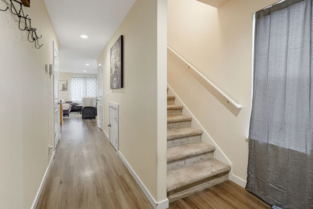 Welcome home to this like-new 2 level home. Deep, spacious backyard with brand NEW cedar fencing. Located in the heart of Salem, great for commuters, easy access to shopping, dining and more. Northgate park just down the road. Comfortable living room is open to the kitchen and dining room. Light and bright windows. Beautiful vinyl plank flooring throughout the first floor. Sliding door off the dining room to the covered patio makes indoor/outdoor entertaining a breeze. Gorgeous kitchen with huge island, custom wood cabinetry with soft close and pull outs, beautiful laminate countertops, bright light fixtures, stainless steel appliances. Great functional flow. Half bathroom conveniently on the first floor. Huge primary suite on the upper level with 3 CLOSETS and en-suite bathroom. Extra space for workout equipment or home office desk. Two additional bedrooms on the upper level. Nice hall bathroom with vinyl flooring and tub/shower combo. Comfortable carpeting throughout upper level. Convenient upper level laundry area. New thermostat. Energy efficient heating/cooling system. So much potential in extra deep backyard with underground sprinklers. Ring security system. Quick access to everything in Salem! This like new home is ready for you to call it yours!